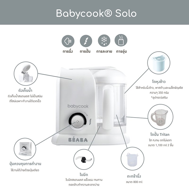 ตัวช่วยมือหนึ่งที่จะช่วยให้คุณแม่ทำอาหารสดใหม่ให้ลูกน้อยได้หลากหลายรูปแบบและรวดเร็ว ทันใจ ทันต่อความต้องการของทั้งคุณแม่และคุณลูก