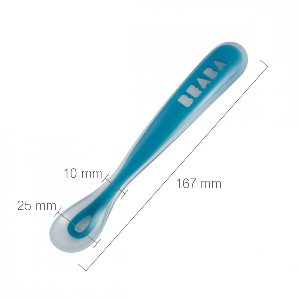 Beaba Ergonomic 1st Age Ergonomic Silicone Spoon is a baby silicone weaning spoon designed for babies transitioning from teat to spoon.